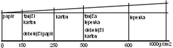 Odnos med papirjem, kartonom in lepenko z ozirom na maso in debelino
