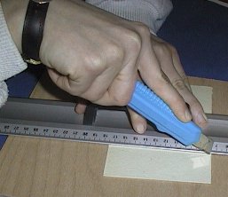 drsimo ob ravnilu in rahlo pritiskamo na površino. Biti moramo pazljivi,