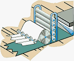 Papirni trak je širok včasih tudi do 10 m. Zato ga vzdolžno